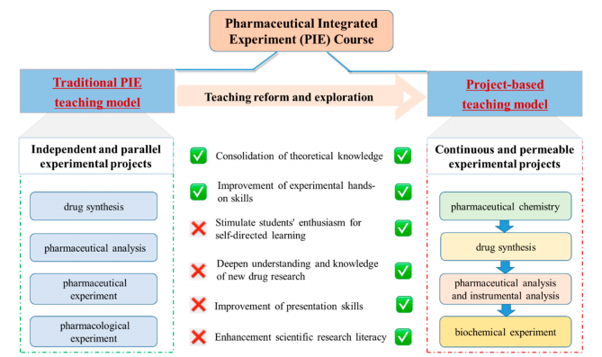药学综合实验(PIE)是一门针对药学和制药工程专业本科生的系统性、综合性的实验课程,也是该专业课程体系的重要组成部分。药学综合实验课程的传统教学包括四个相对独立和平行的实验项目,即药物合成、药物分析、药物化学和药理实验,四个实验项目之间没有相关性,学生对此学习兴趣也不高。为不断提高该课程的教学质量,该课程组提出了基于教学教师课题组具体科研项目,开展案例教学模式探索与实践的改革。改革后的《药学综合实验》课程以课题组新型SIRT5小分子抑制剂研究项目为案例,学生在教师的指导下,自主查阅文献了解项目背景;接着在老师指导下进行药物分子设计;然后根据所设计分子开展化学合成、结构表征以及生物活性测试等系列实验;随后学生再对实验结果进行结果讨论和撰写实验报告;最后以问卷的形式收集学生对该教学模式的意见和建议。这种教学模式能够全面、系统地建立实验内容,使实验过程具有连续性,实验项目具有渗透性。同时,这一模式为学生提供了参与一项连续的新药研发早期项目的机会,极大地提高了学生对药学综合实验课程的学习兴趣,加深了学生对所学专业的认识和认可度。此外,该教学模式提升了学生基础实验操作能力,协调能力和团队精神,为应用现代实验技术的药学专业学生从事新药研究奠定了坚实的基础。改革后的课程教学管理包含了课程过程评估、学生自我评估、同行评审等部分。在课程考核上,改变以往以结果为导向的验证性实验考核机制,将学生实践过程、工作汇报与论文撰写作为考核的重点,并且融入了学生自我评价和他人评价,极大的提升了学生对本课程的参与感。