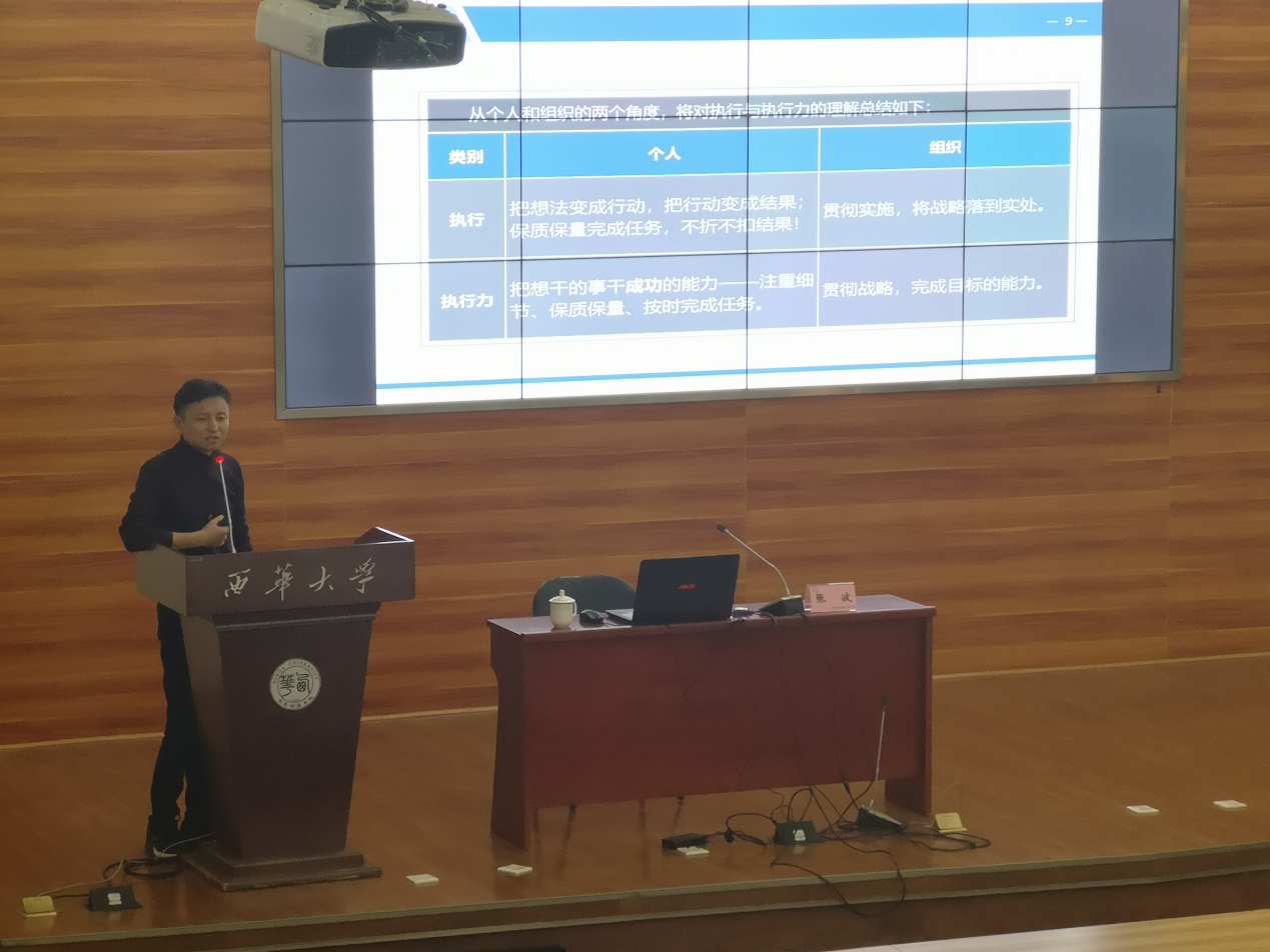 正式开讲前,刘洪老师向大家介绍了主讲人张波(张乐)学长,张学长2011年毕业于365电子娱乐官方网站,现为成都树空间创意文化传播有限公司联合创始人兼副总经理,又兼任四川省技术创新促进会专家委员会副秘书长、成都医学院特聘教师、新津县社区规划师。张学长从自己奋斗的艰辛历程中切入,告诉大家大学时光珍贵且不可浪费。张学长提到,当代大学生遇事善拖沓,过分的拖拉已经严重影响了个人的学习生活。而追逐梦想的意志便在这无尽的拖沓中反复消磨。对此,张学长告诫我们拒绝拖沓,遇事果断执行,通过提高执行力改正拖沓的缺陷。随后,张学长列举了一些亲身实例向我们阐述了提高执行力的作用与意义,进一步深入了“如何成为更好的我”的讲座主题。张学长言语幽默有趣,同学们认真聆听指点并不时与学长互动。会场氛围充满向上、活泼之韵味。