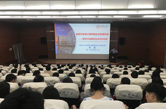 2019年9月10日,西华大学2019年人才培养校企合作论坛食品与生物工程学院分论坛在图书馆报告厅举行,此次讲座嘉宾是四川太平洋药业有限责任公司总经理李勇及公司项目经理张加宇,食品与生物工程学院党委副书记、副院长李鹤,食品与生物工程学院学工办王雁出席。论坛由胡永正主持。