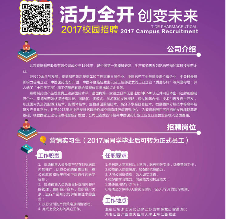 泰德制药秉承“关怀生命、精益创新”的宗旨,以开发具有独立知识产权的创新药为目标,以独立创新、自主研发和引进吸收再创新为发展方向,立足国内,放眼世界,为社会提供更优质的新药产品、为改善大众的健康水平而不懈努力!