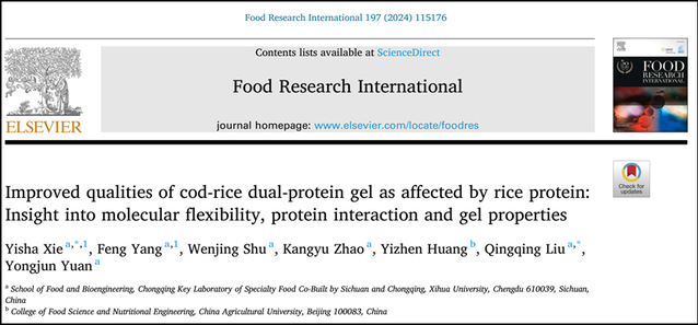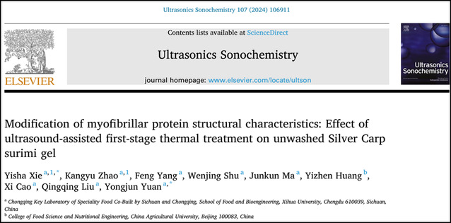 近期,食品与生物工程学院袁永俊教授、刘庆庆副教授、谢伊莎副教授研究团队在Journal of Agricultural and Food Chemistry、Ultrasonics Sonochemistry、Food Research International 等国际TOP期刊上针对超声调控蛋白凝胶与机制研究等发表多篇高水平研究型论文。