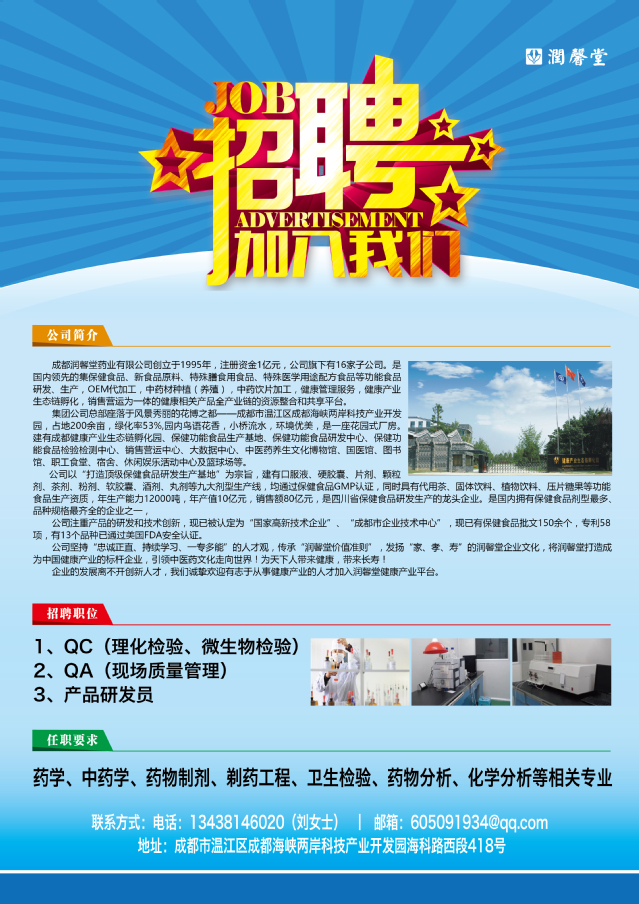 详见简章,这是一个师姐的单位在招聘,有疑问请与单位联系,有意愿的同学们请直接发简历到招聘单位。
