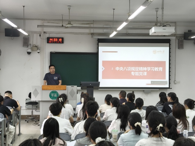 随后,学院党委副书记、纪委书记张广峰同志为全体毕业生党员讲授了中央八项规定精神学习教育专题党课。张广峰同志语重心长地告诫即将踏上社会的毕业生党员,务必时刻绷紧纪律之弦,将八项规定精神内化于心、外化于行,自觉抵制各种诱惑和歪风邪气,在未来的工作岗位上始终做到清正廉洁、担当作为,以实际行动维护党的形象,走好走稳人生每一步。