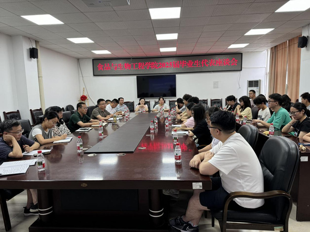 6月23日,食品与生物工程学院于5D419成功举办2025届毕业生代表座谈会。学院党委书记熊华,院长唐洁,副院长林洪斌,专职组织员吴燕,各系(室)主任及2025届毕业生代表参加会议。座谈会由学院党委副书记张广峰主持。