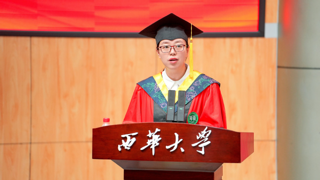 农业专业硕士研究生张良聿作为毕业生代表发言。他深情回顾了在学院学习生活的难忘时光,感谢师长教诲、同窗陪伴,并表示将以专业守护健康中国,用热爱点燃科技星河。