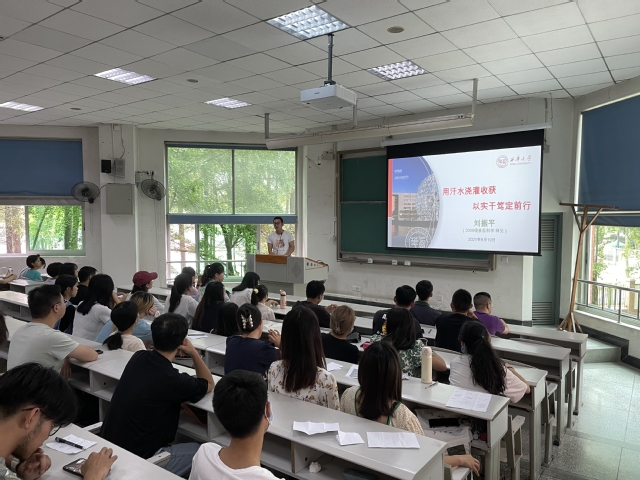 为帮助大学生有效进行人生定位,引导学生树立正确的就业观和成才观,提升就业创业综合竞争力,2021年9月10日,365电子娱乐官方网站邀请2009级食品科学专业硕士研究生校友刘振平,在4-201作了题为“用汗水浇灌收获,以实干笃定前行”专题讲座。我院2021级研究生参加了讲座。