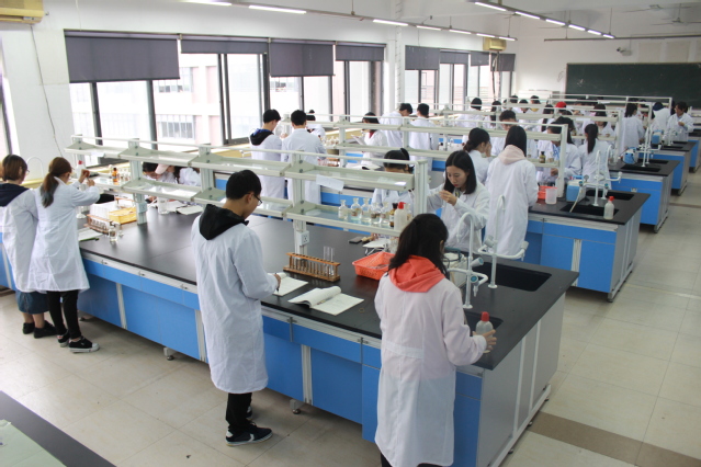 生物化学实验室面向食品科学与工程、食品质量与安全、生物工程、制药工程、环境工程等专业本科生开设课程实验。实验室配备有低速离心机、紫外分光光度计、可见分光光度计、电子天平等设备,可以开展基础生物化学实验教学工作,也可以为本科学生完成毕业论文、研究生完成学位论文和教师的科研工作提供场地和仪器设备支持。