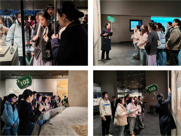 步入场馆,党员同志们在讲解员的带领下依次参观了“世纪逐梦”“巍然王都”“天地人神”三大主题展区,系统了解三星堆考古发掘历程及最新研究成果。在“世纪逐梦”展区,考古日记与发掘工具等实物展现了考古工作者矢志不渝的坚守精神;“巍然王都”展区借助多媒体成像技术重现古蜀国自然与社会风貌,青铜立人像、黄金面具等展品则彰显了古蜀时期高超的工艺水平;“天地人神”展区中,青铜神树与纵目面具等礼器,生动体现了古蜀先民瑰丽的想象力与非凡创造力。展馆里,一件件精美的青铜器、玉器、金器等历史文物都承载着中华民族的智慧与精神。而默默守护在这些文物背后的工作者们,其执着专注、精益求精、一丝不苟的工匠精神,更鲜明地彰显了中华文明的精神标识,深刻凝聚了民族文化的精髓