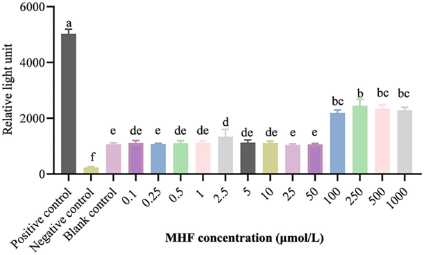 不同MHF浓度对哈维氏弧菌BBI70发光的影响