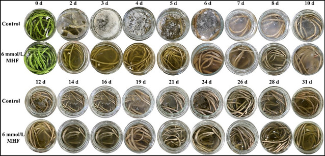 图5 MHF抑制泡菜发酵过程中菌膜的形成