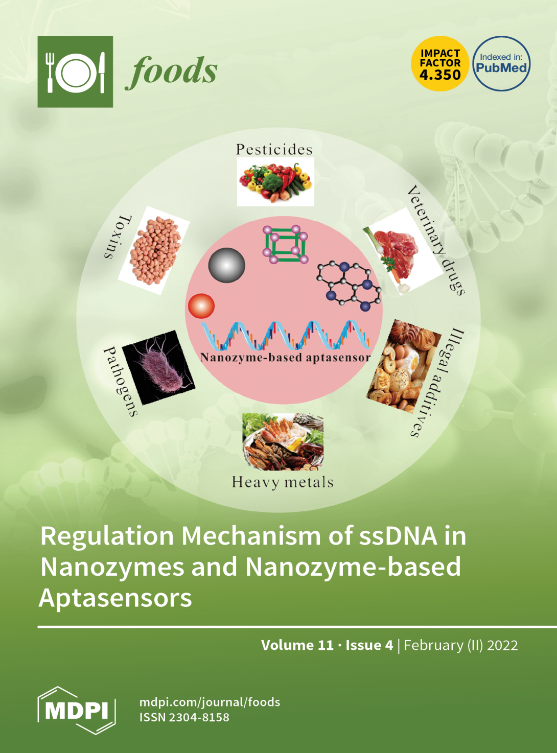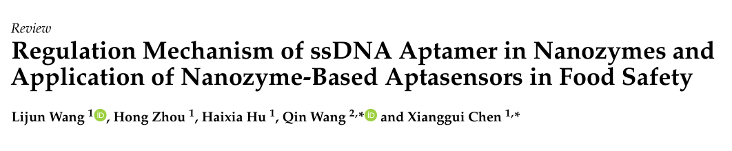 近日,365电子娱乐官方网站食品营养与安全团队在国际著名期刊《Foods》(IF=4.35)上发表了题为“Regulation Mechanism of ssDNA Aptamer in Nanozymes and Application of Nanozyme-Based Aptasensors in Food Safety”的综述期刊(Front Cover文章)。文章通讯作者为西华大学陈祥贵教授和马里兰大学王芹教授,第一作者为王力均副教授。