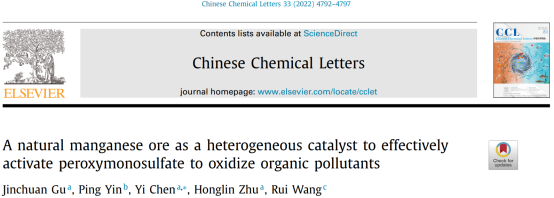 近日,食品与生物工程学院谷晋川教授环境污染治理研究团队,在国际著名期刊《Chinese Chemical Letters》(IF=8.455)上发表题为“A natural manganese ore as a heterogeneous catalyst to effectivelyactivate peroxymonosulfate to oxidize organic pollutants”封面论文。文章第一作者为谷晋川教授,通讯作者为陈怡博士。