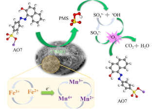 为此,基于将载体与活性组分为一体的思路,提出了一种含铁、锰元素的天然锰矿石作为PMS活化催化剂的催化氧化方法,对催化能力和稳定性进行了评价对催化剂进行了系统表征,并以橙II (OII)为代表污染物进行了一系列催化试验,以确定影响催化能力的主要条件和主要活性组分提出了一种简单的PMS分解和OII的降解和矿化机理。该系列相关的其他研究成果,还分别公开发表在《RSC Advances》和《应用化工》(CSCD)期刊上。