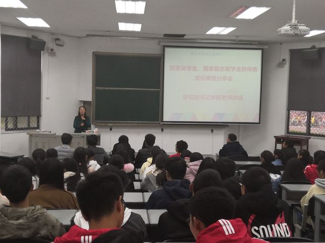 李书记在讲话中指出,国家的助学政策,体现了党和政府对家庭经济困难大学生的关怀,在经济上帮助大学生在困境中顺利完成学业,同时激励贫困学子努力学习、奋发进取。因此,希望学院获得国家助学金的同学,珍惜国家和学校提供的帮助,养成良好的生活、学习习惯,向国家奖学金、励志奖学金获得者等优秀的同学学习。她告诫同学们滴水之恩当涌泉相报,希望同学们要永怀一颗感恩之心、进取之心,以乐观的心态去面对学习和生活中的各种挑战,以优异的成绩回报社会。