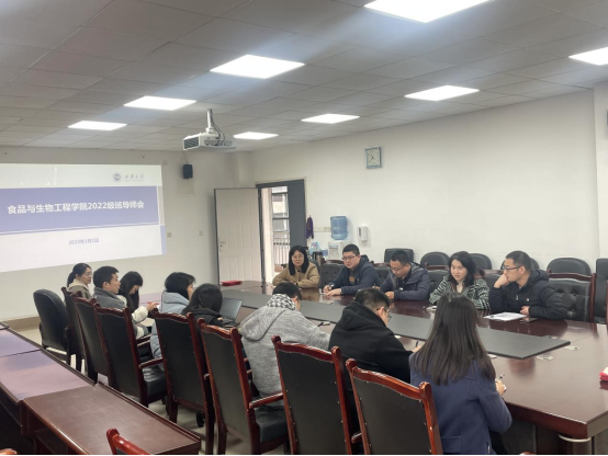会上,王雁介绍了学院2022级班导师配备情况,带领全体班导师学习了班导师管理规定及职责要求,辅导员孙鹏介绍了学生的思想表现和学习状况,食品系系主任黄玉坤和生物系系主任陈鹏飞分别交流了作为班导师的工作经验。