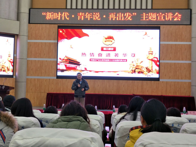 为深入了解学习团的十八大精神,为建设全面体现新发展理念的城市汇聚磅礴青春力量,食品与生物工程学院12月15日于四教报告厅举行宣讲会,宣讲会主要内容为“学习团十八大精神”,由食品与生物工程学院团委书记刘洪主讲。学院各领导和老师,及2016级各行政班悉数到场。