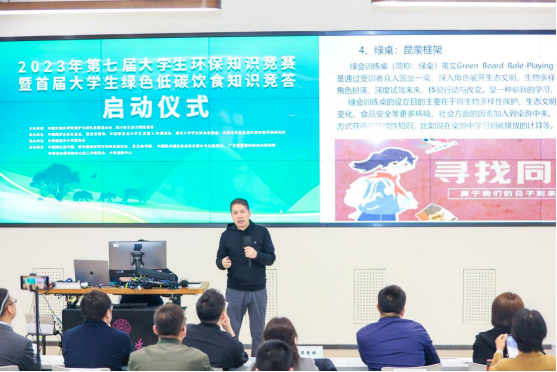 2023年4月8日上午,在第54个世界地球日来临之际,为贯彻落实习近平总书记在党的二十大报告提出推动绿色发展、促进人与自然和谐共生,牢固树立和践行绿水青山就是金山银山的理念,中国生物多样性保护与绿色发展基金会和四川省生态文明促进会联合主办,中国绿发会良食基金、我爱竞赛网、中国绿发会大学生发展工作委员会、清华大学学生知食者协会和北京市丰台区源头爱好者环境研究所承办,共青团清华大学委员会协办的2023年第七届大学生环保知识竞赛暨首届大学生绿色低碳饮食知识竞答公益活动在清华大学正式启动!我校食品与生物工程学院党委副书记、四川省生态文明促进会副秘书长张广峰受邀参加启动仪式并做发言。