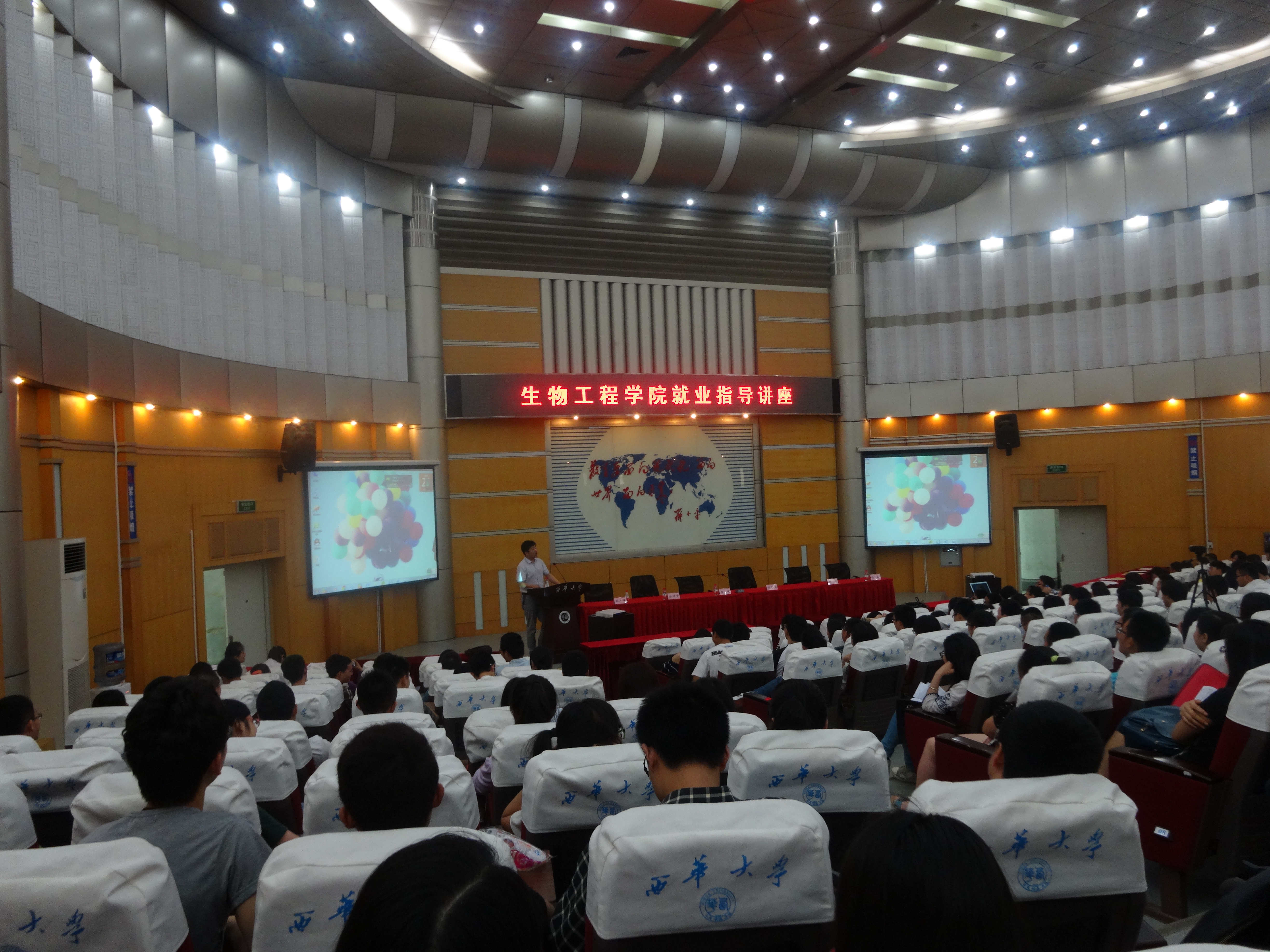 为进一步指导我院徘徊在就业和考研两者之间同学们,帮助大家熟悉就业与考研方面的知识。5月22日下午,由我院组织承办的“就业指导”讲座在四教报告厅成功举办。这次讲座特别邀请到成都市青羊区高联培训学校的张彪老师主讲,讲座由学院团委书记张广峰主持,2011级全体学生以及部分2012级学生参加了此次讲座。