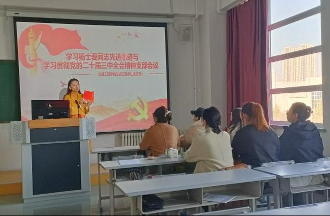 为学习宣传杨士莪同志先进事迹,大力弘扬科学家精神、教育家精神,充分响应学校开展的向“时代楷模”杨士莪同志学习活动部署要求,食品工程学院党委组织各师生党支部开展了“学习杨士莪同志先进事迹贯彻落实党的二十大和党的二十届三中全会精神”专题活动。