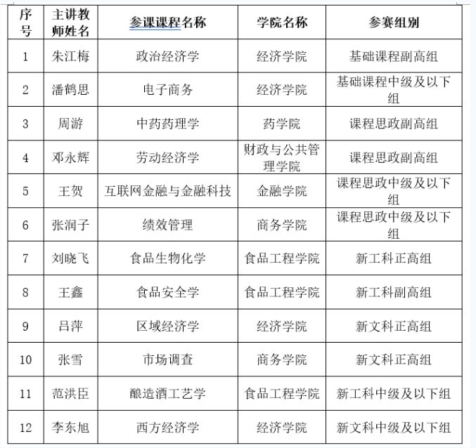 第四届校级教学创新大赛喜获佳绩 2024年03月01日 13:40 浏览次数:次 哈尔滨商业大学第四届教学创新大赛,经学院广泛开展院级赛训结合的遴选推荐,学校组织专家进行校赛初赛,对选手的申报材料按评审指标进行打分,遴选出参加校赛决赛选手,在决赛中对选手的教学设计汇报进行综合评审,365电子娱乐官方网站刘晓飞老师,王鑫老师,范洪臣老师获第四届教学创新大赛校级二等奖。 上一条: 食品工程学院三位老师喜获哈尔滨商业大学实验教学和教学实验室建设研究项目 下一条:365电子娱乐官方网站喜获1项黑龙江省重点研发计划重点领域专项项目