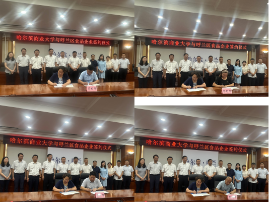 8月16日,我校与呼兰区四家食品企业:哈尔滨兴利米制品有限公司、哈尔滨市胜武食品有限公司、哈尔滨市超越食品有限公司、哈尔滨健源薯业食品有限公司在呼兰区政府七楼会议室举行校企合作签约仪式。呼兰区委书记曹德友,区委副书记、区长吕海东,副区长贾玉国;我校校长郑秋鹛、副校长赵大伟出席仪式。我校相关部门负责人、教师代表以及呼兰区食品企业相关负责人参加仪式。吕海东主持仪式。